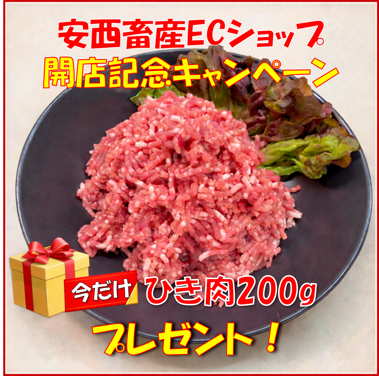【今なら安西畜産ECショップ開店記念おまけつき。ちょっとうれしい国産豚ひき肉200gをプレゼント】